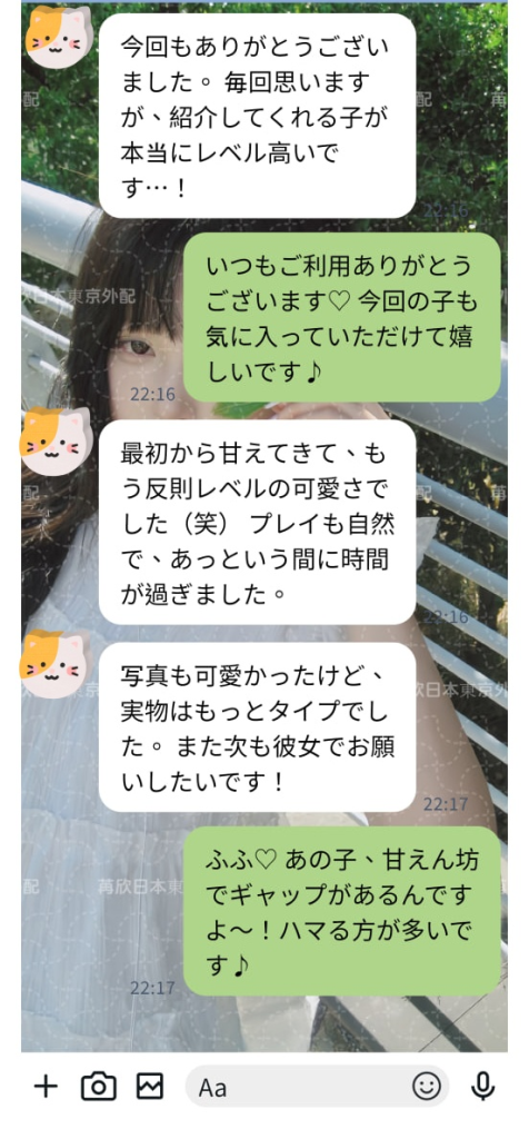 2回目の予約の女の子、とても気に入っていただけて嬉しいです。